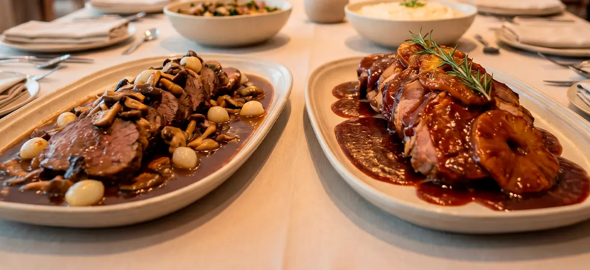 Carne macia e suculenta, preparada lentamente para realçar sabor e textura, ideal para ocasiões especiais e bem servidas